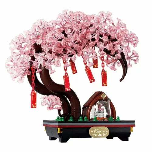 Lego orchidée rose vase rouge asiatique – Élégance florale zen pour déco apaisante et originale
