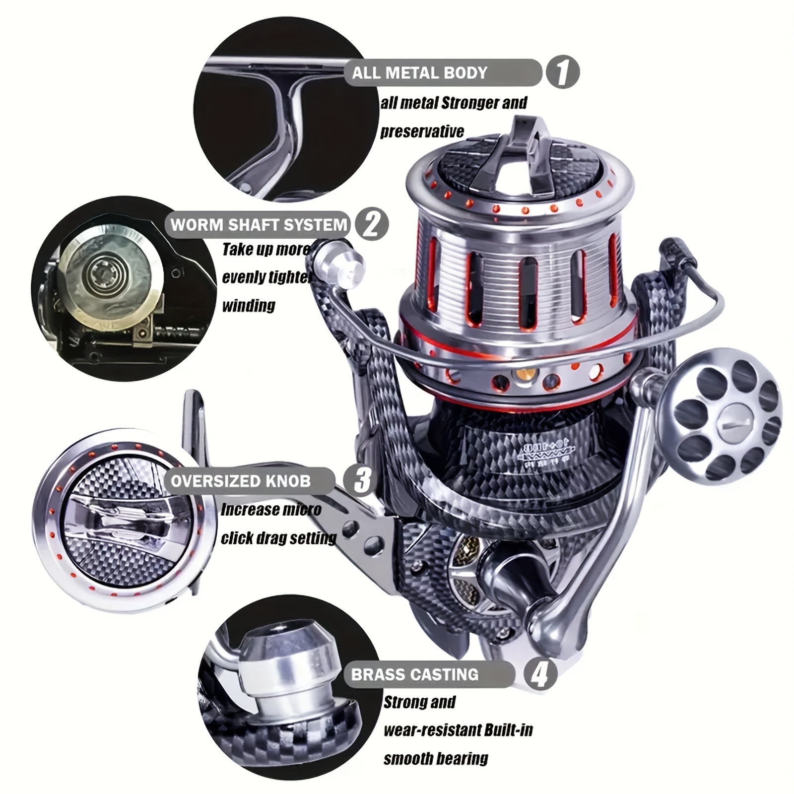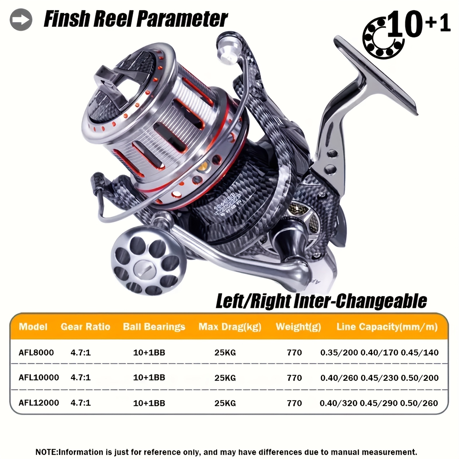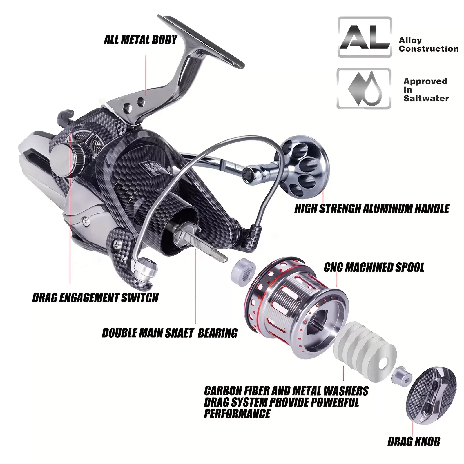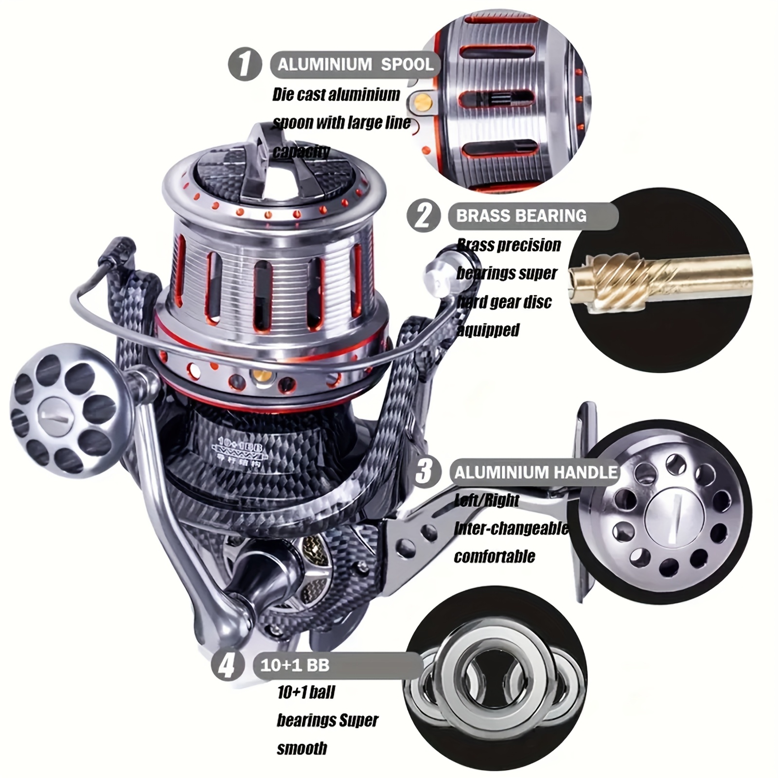 - La 1 pièce moulinet de pêche offshore 8000-12000 assure une traction fluide jusqu’à 25 kg, idéale pour les grosses prises en mer.