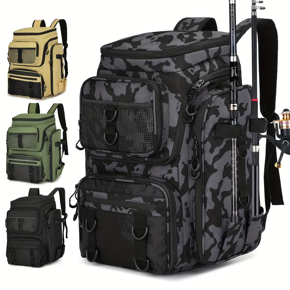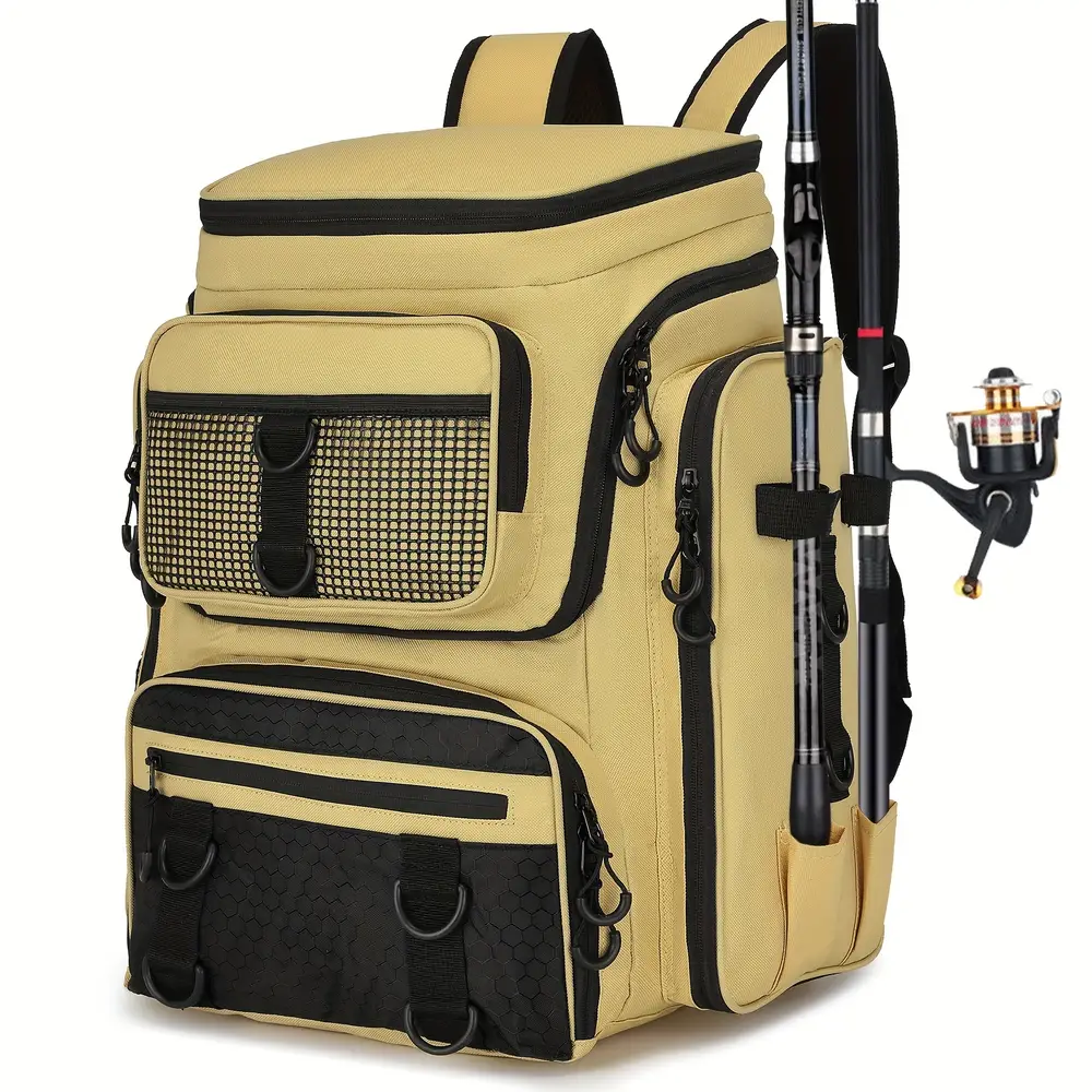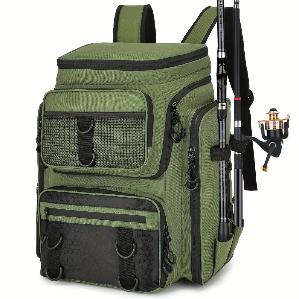 Sac à dos de pêche avec porte-canne intégré et multiples compartiments organisés