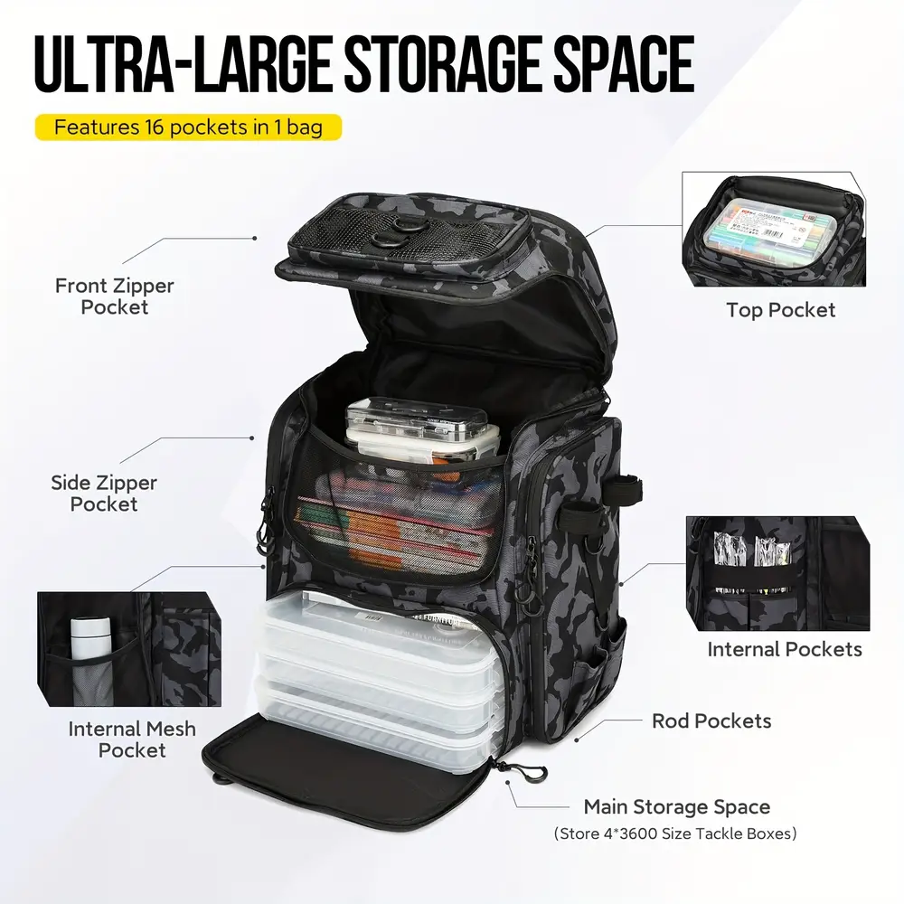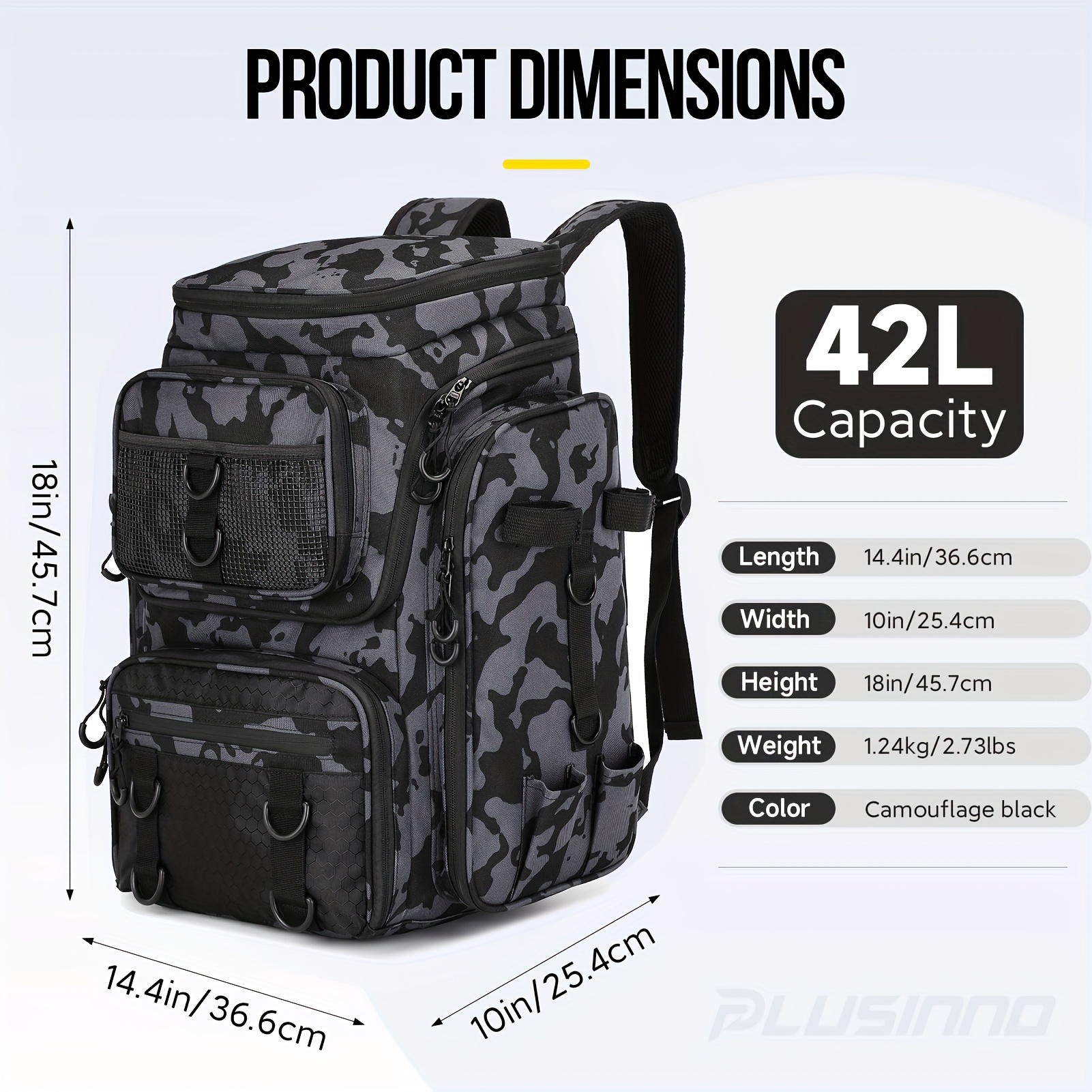 - Avec ses 42 litres de capacité, ce sac à dos de pêche ultra grand vous permet de transporter tout votre nécessaire sans en oublier un seul leurre