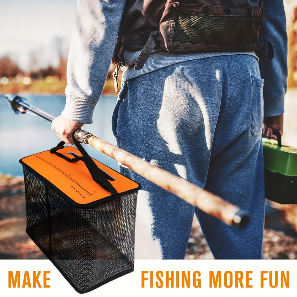 Panier de pêche flottant pliable avec filet à séchage rapide et poignée renforcée