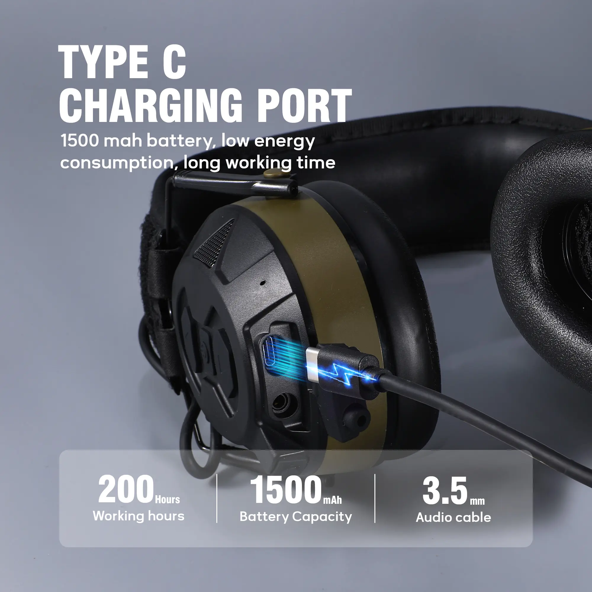 - Doté d’une batterie lithium rechargeable, ce casque de tir avec USB-C offre jusqu’à 200 heures d’autonomie