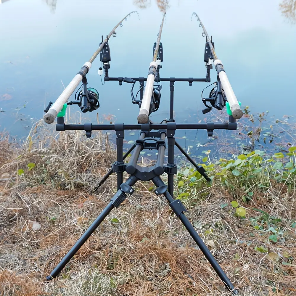 - Le trépied de pêche pour trois cannes offre un maintien stable, même en cas de vent ou de sol meuble.