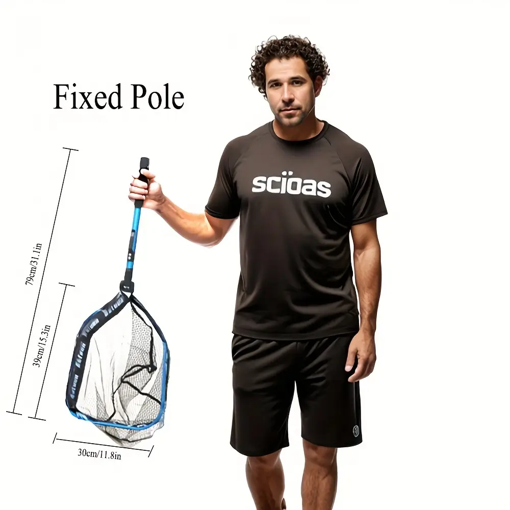 - Épuisette pliable avec trois sections rabattables, pour un rangement compact et un transport simplifié.