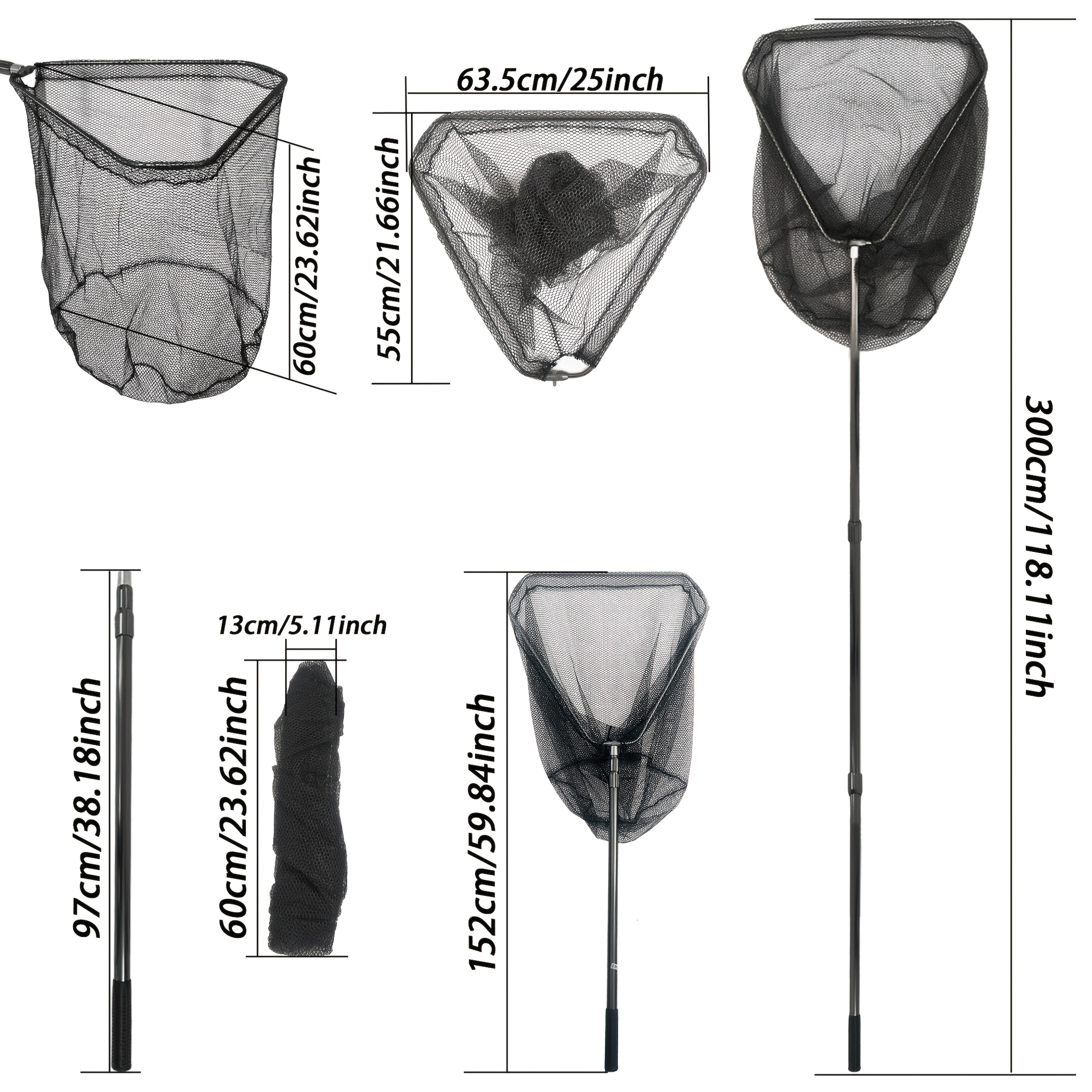 Filet de pêche robuste à tête large avec manche télescopique extensible