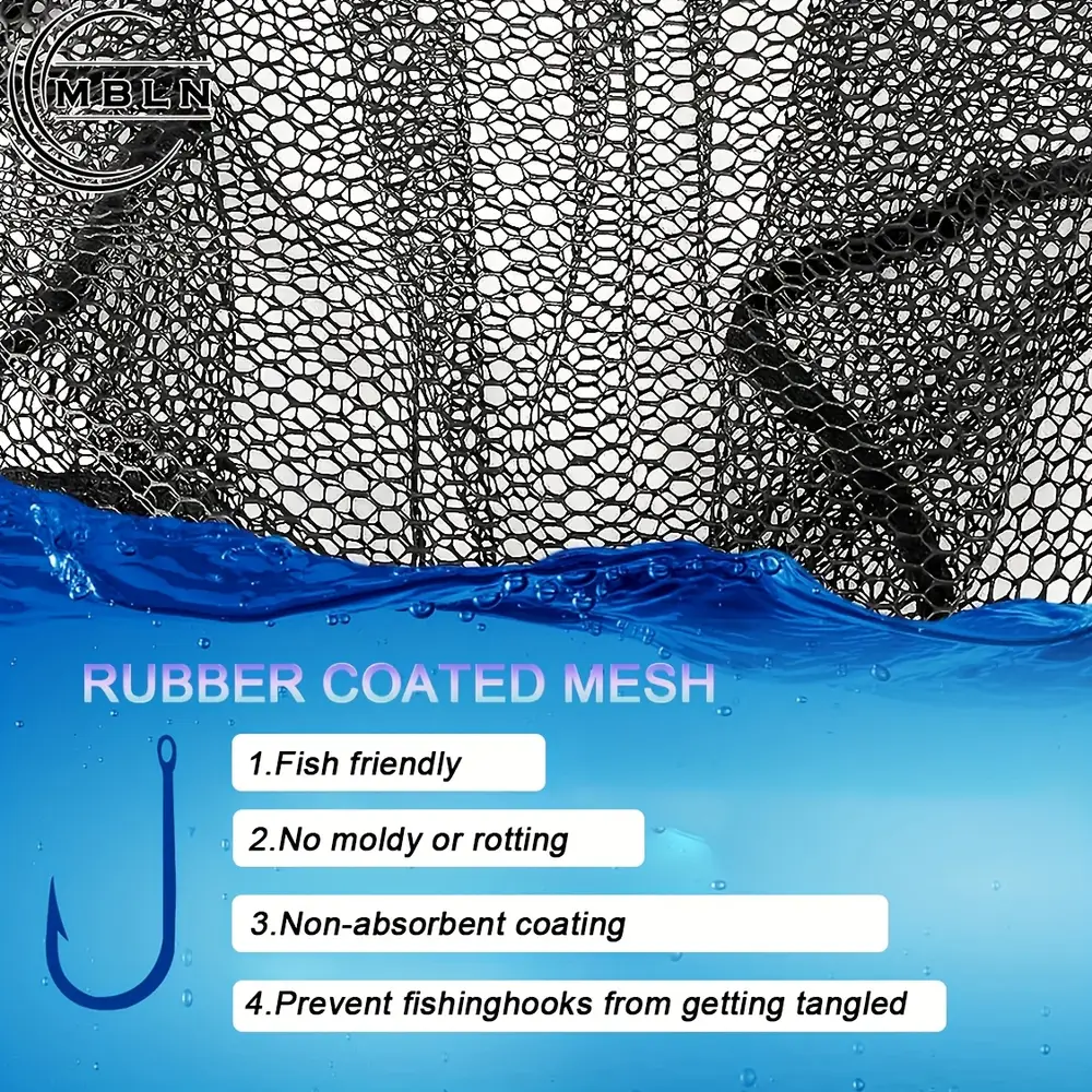 • Maille noire résistante et souple conçue pour minimiser les blessures du poisson tout en garantissant une haute capacité de charge.