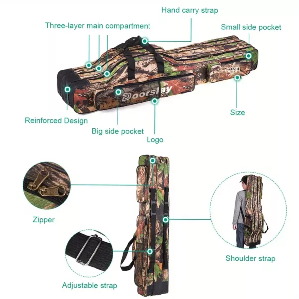 Sac de pêche 3 compartiments pliable – Fourreau portable multifonction robuste