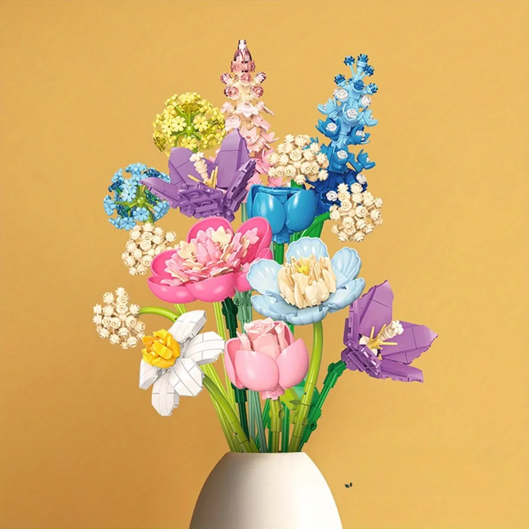 Lego bouquet de fleurs multivariétés colorées – Cadeau original et durable pour une déco florale sans entretien