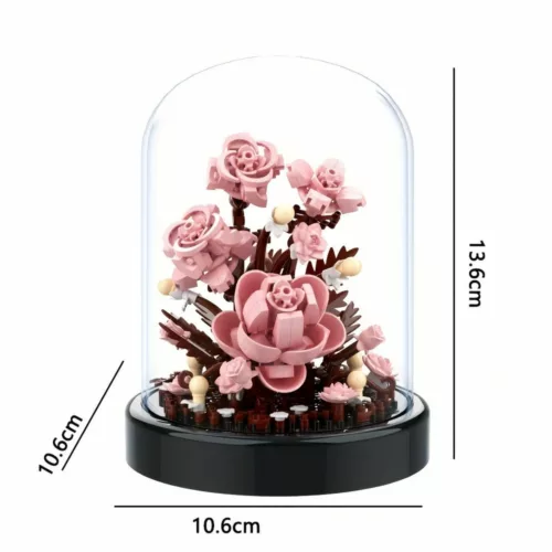 Lego orchidée roses sous cloche transparente – Décoration florale éternelle élégante et apaisante pour intérieur raffiné