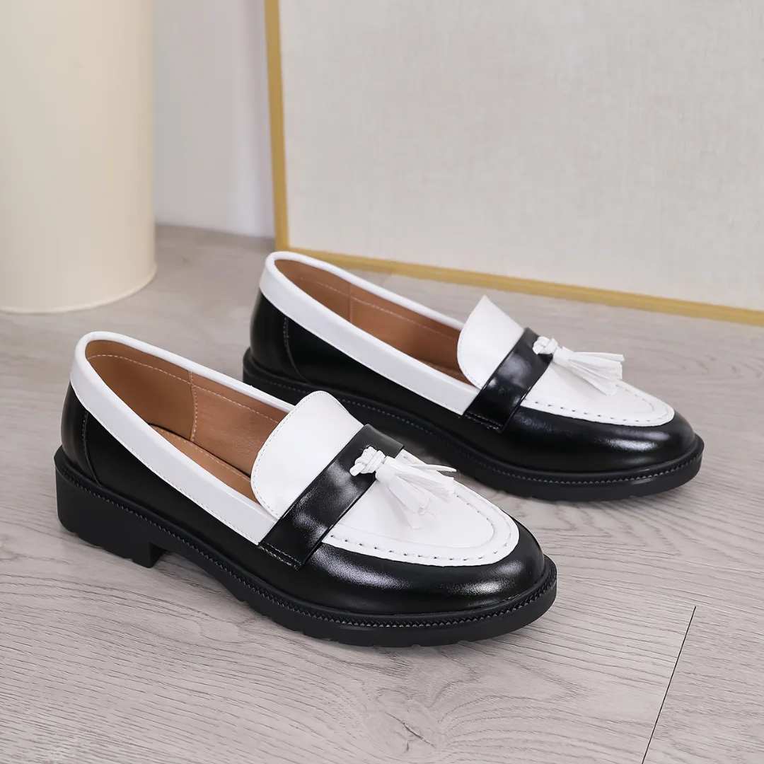 Mocassin Femme Bicolore Pampilles Élégantes – Classe intemporelle et style raffiné