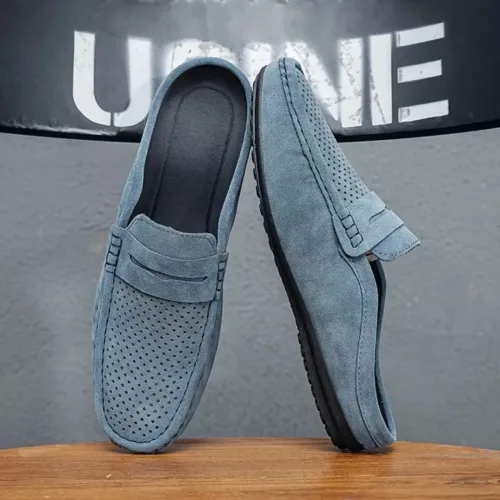 Mocassin homme ouvert daim perforé – Confort respirant pour l’été – Élégance décontractée et pieds au frais