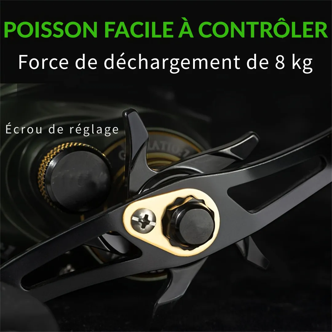 - Dimensions : Compact et facile à installer sur toute canne à pêche baitcasting.