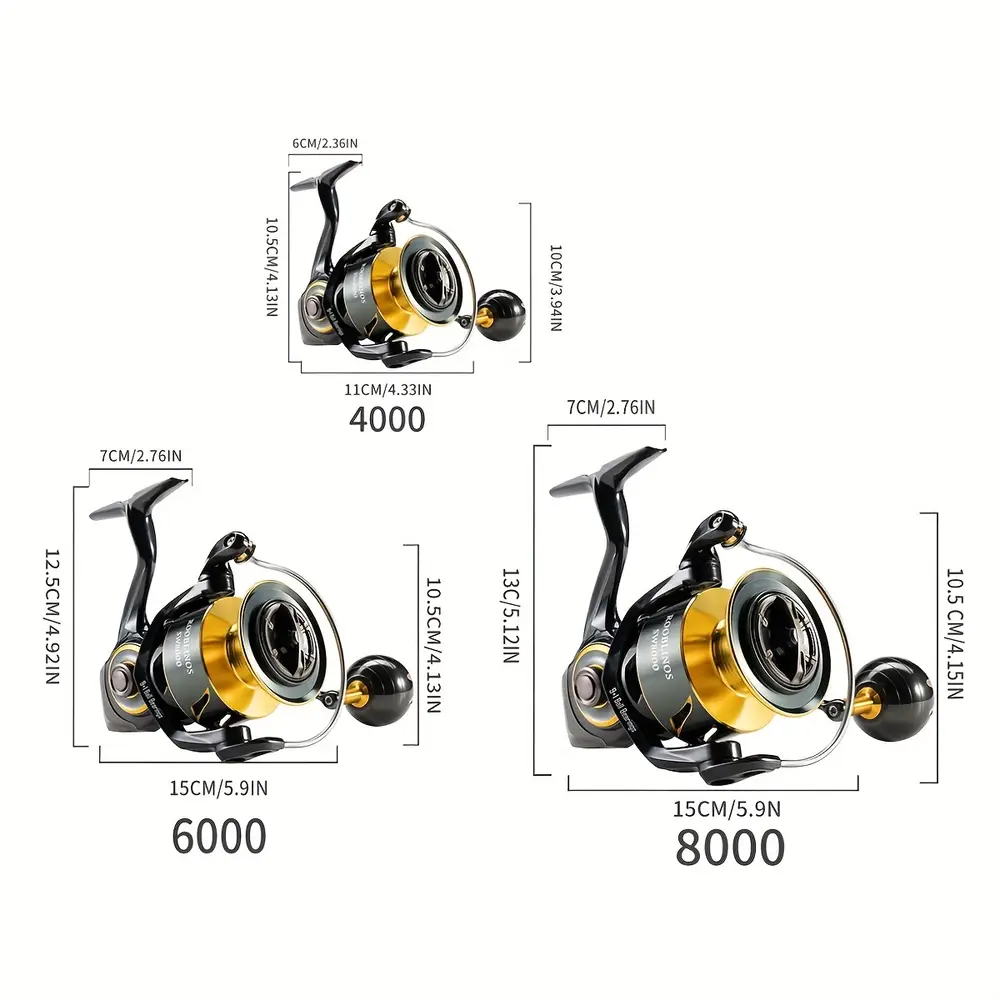 - Compatible avec les pêches côtières et en haute mer, ce moulinet spinning multisérie 4000/6000/8000 offre une forte polyvalence