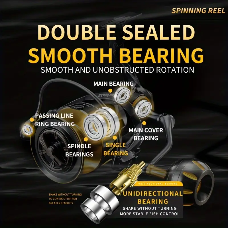 - Composé d’un corps en métal renforcé, le moulinet assure une durabilité maximale même après de longues sessions intensives