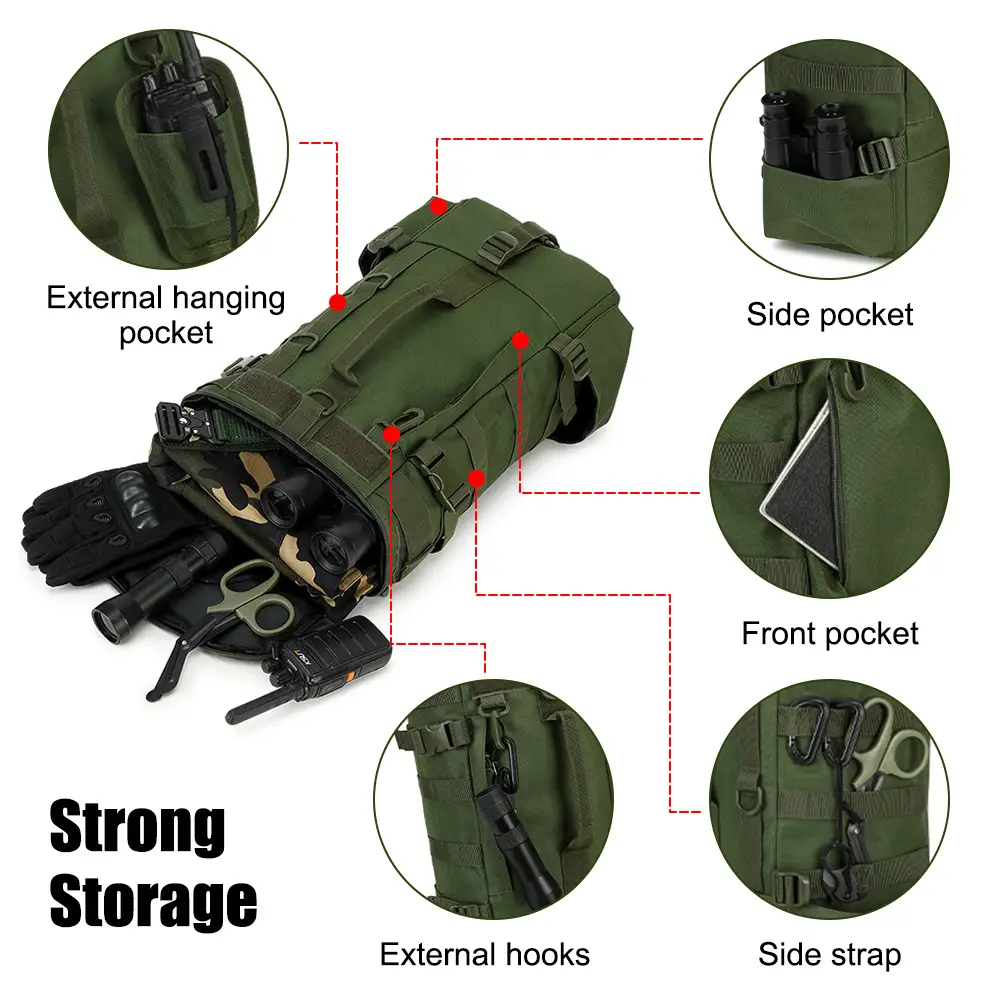 - Idéal pour les amateurs de sac à dos militaire camouflage outdoor grâce à son design sobre en vert ou noir tactique