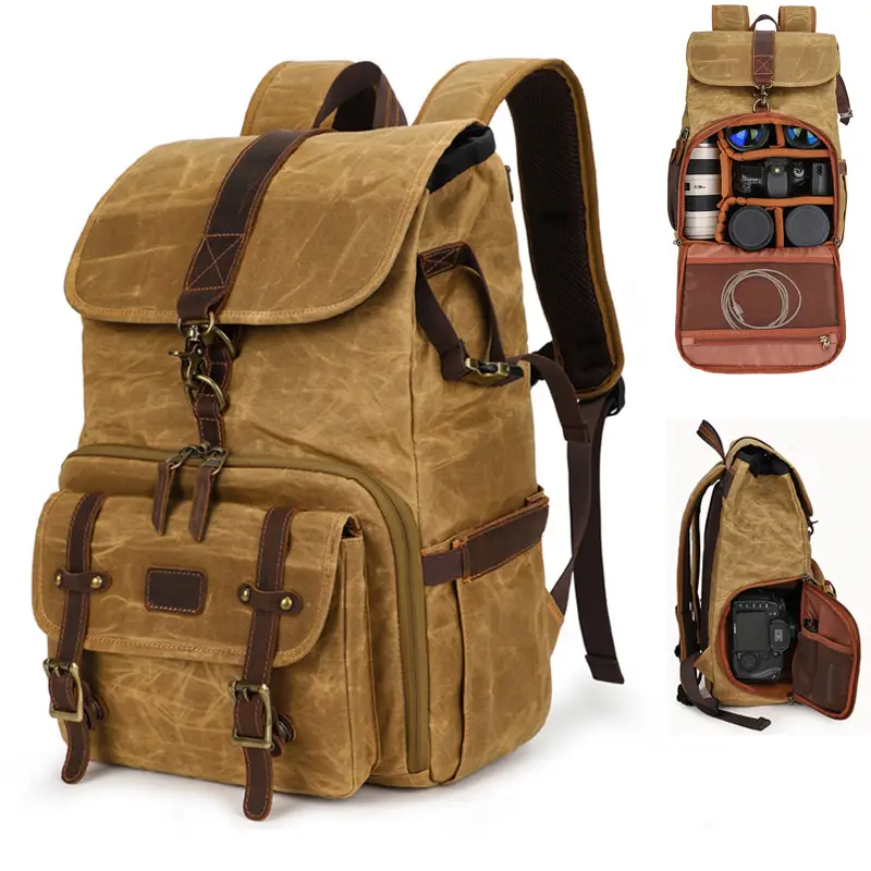 Sac à dos photo vintage étanche – compartiments DSLR, trépied et PC portable