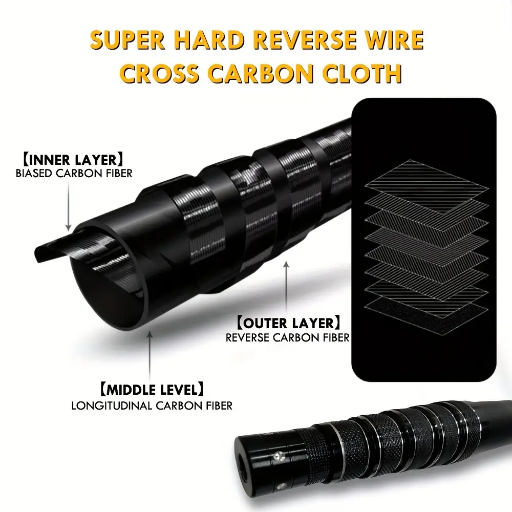 - Composée d’une canne en carbone ultra-résistant légèrement flexible, elle garantit une durabilité optimale même face aux grandes prises