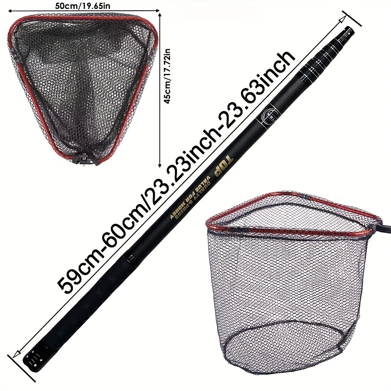 Epuisette de pêche pliable en carbone avec filet triangulaire et manche télescopique