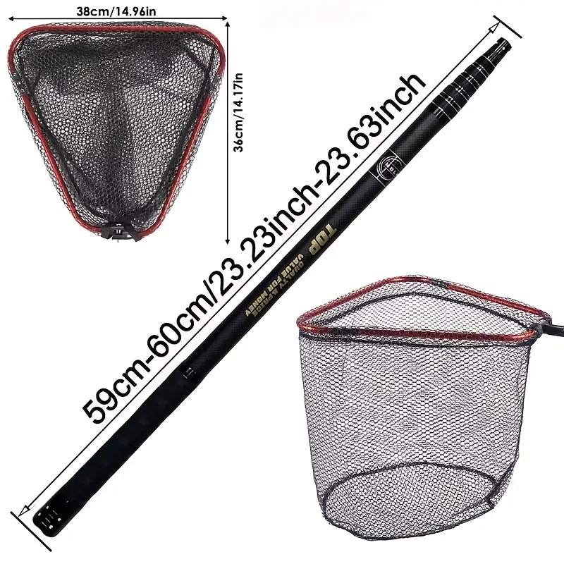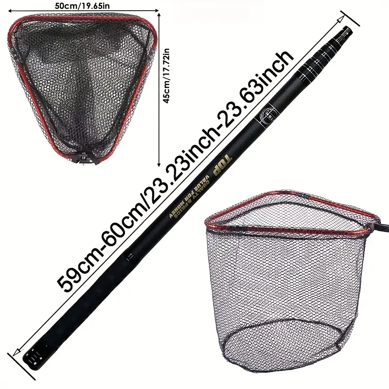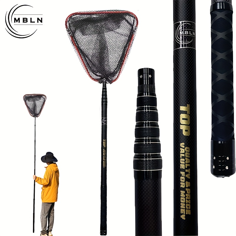 Epuisette de pêche pliable en alliage et filet résistant – manche carbone robuste